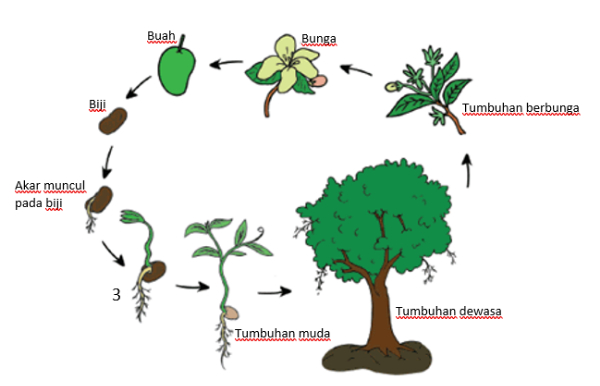 Tunas tersebut terus berkembang menjadi pohon mangga yang masih kecil. Biji inilah yang kemudian jika kita tanam pada suatu saat akan tumbuh akar dan juga tunas. Berbeda dengan ayam kucing berkembang biak dengan cara beranak.